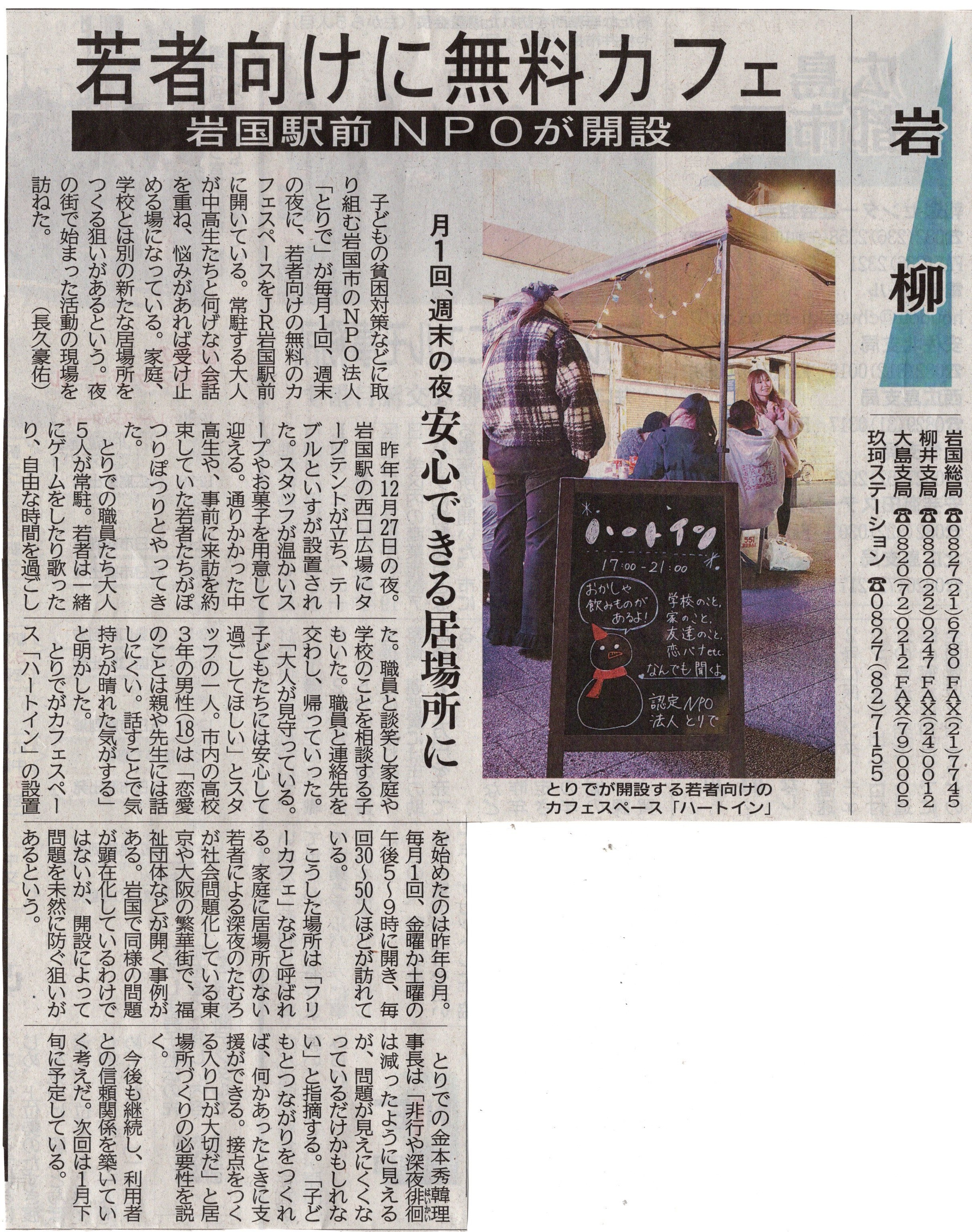 ・令和3年12月26日(日) 中国新聞(とりでこども食堂)画像