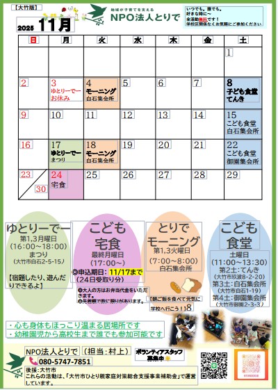 相談窓口 : NPO法人とりで 子育て相談窓口 070-3787⁻9904 toride@toride2016.com